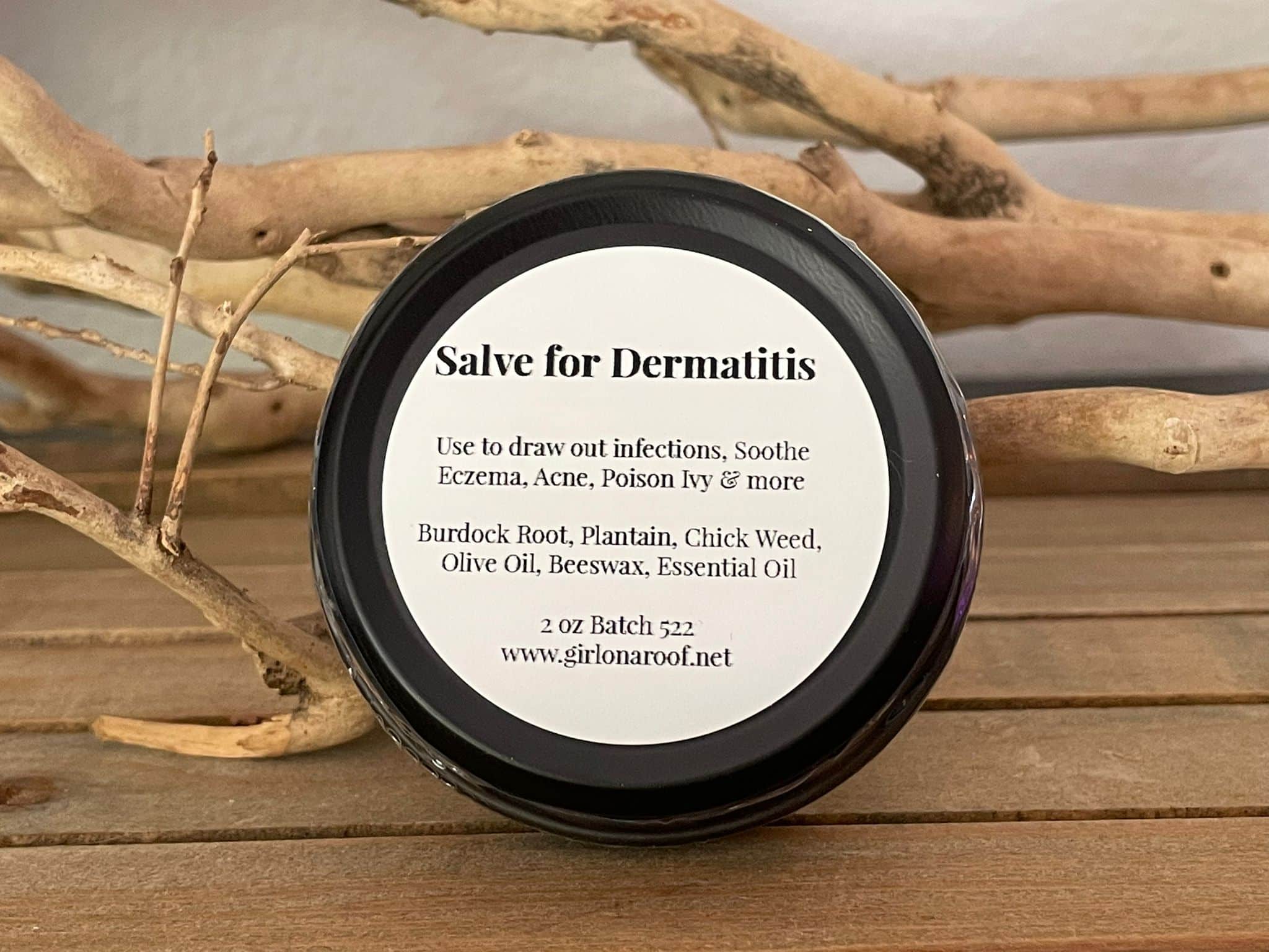 is a traditional herbal drawing salve crafted to support the skin during more stubborn irritation and imbalance. Made with burdock root, plantain, and chickweed, this formula is designed to help calm redness, itching, and discomfort while supporting the skin’s natural repair process.